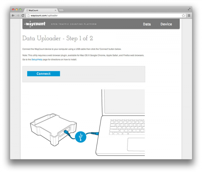 The WayCount device works like other traffic counters, but has two key differences: lower cost and open data. At 1/5th price of the least expensive comparable product, the WayCount device is affordable. The WayCount Data Uploader allows you to seamlessly upload and map your latest traffic count data, making it instantly available to anyone online.