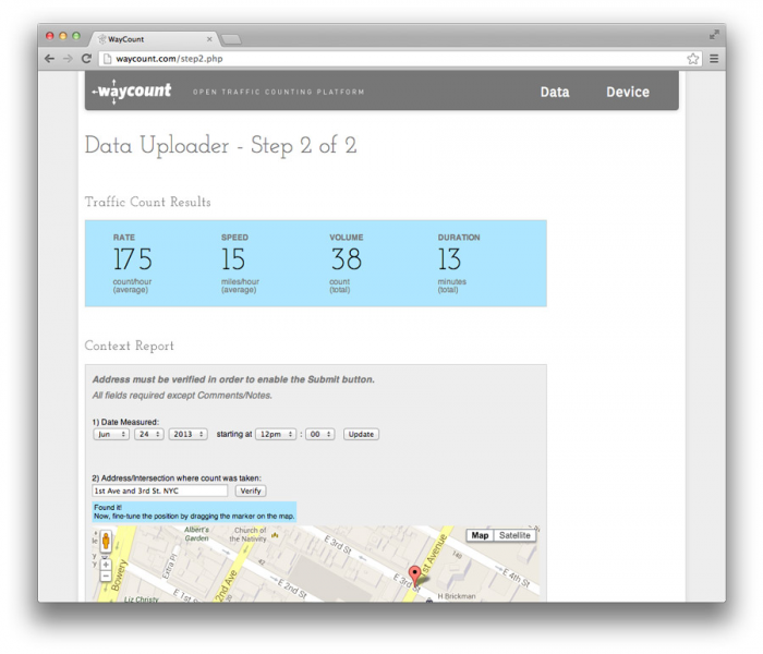 WayCount is an important addition to the process of measuring the impact of transportation design, and creating livable streets by adding bicycle lanes, public spaces, and developing smart transportation management systems. By creating open-data, we can increase governmental transparency, and provide constituencies with the essential data they need to advocate for rational and necessary improvements to the design, maintenance, and policy of transportation systems.